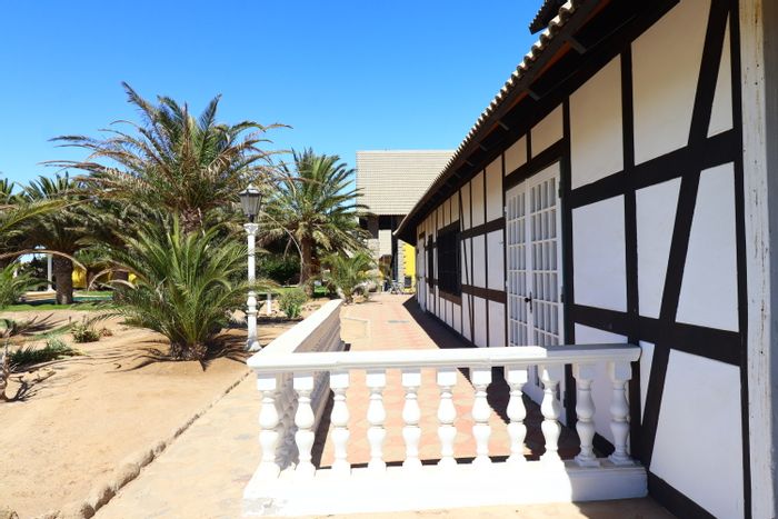 Riverside retreat bordering Dorob National Park and Moon Valley, 17km from Swakopmund, ideal for lodge living; features a 360° watch tower with BBQ, 13 bedrooms, 10 bathrooms.