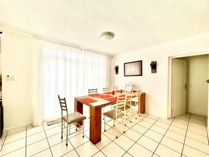 Coastal lifestyle with direct beach access and panoramic sea views, ideal as an AirBnB retreat. Ground-floor flat with indoor braai, communal pool, two bedrooms, two bathrooms, tandem garage.