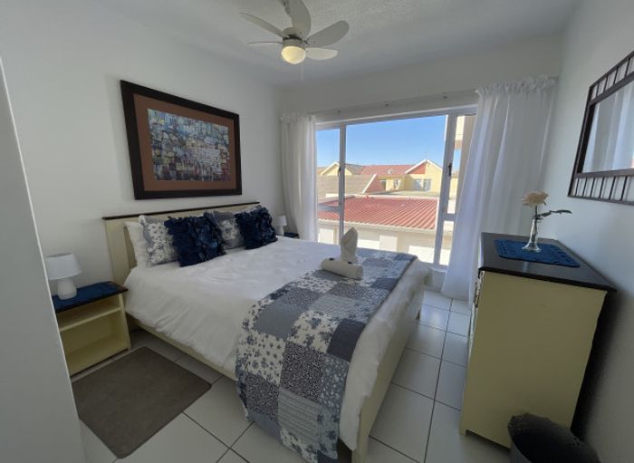 Wake up to ocean breezes seconds from your door in central Swakopmund; open-plan living flows onto a balcony with sea views, two bedrooms, two bathrooms, lift access.