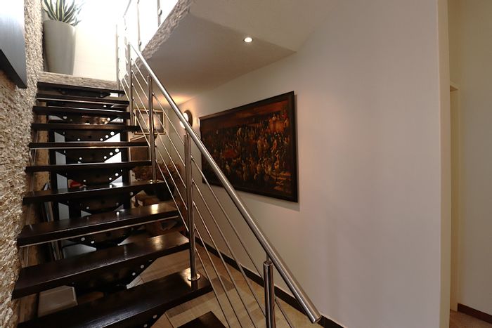 Coastal city-centre living in Swakopmund Central, steps from cafes and beaches, with a large upstairs entertainment lounge, open-plan living, three bedrooms, three bathrooms and single garage.