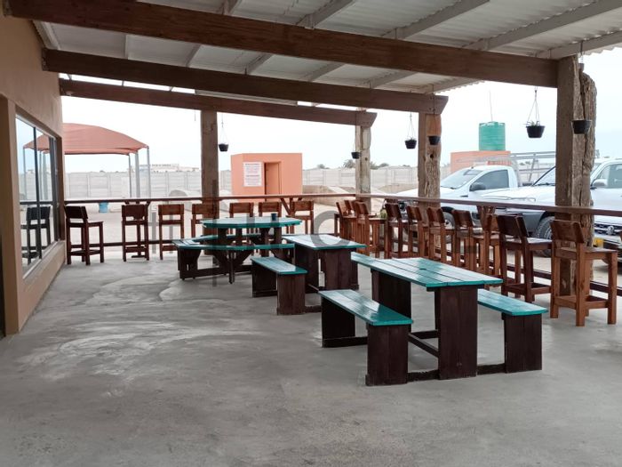 Coastal entertainment and fishing hub in Henties Bay — licensed restaurant with bar, tackle shop and fish-cleaning area, two-bay car wash, included equipment and seating on a spacious 3,076 m² site.