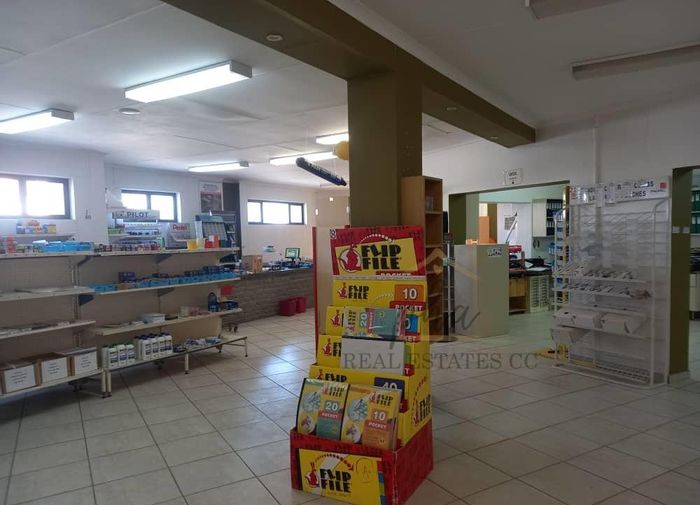 This commercial property in Walvis Bay features a 1025 sqm showroom and a 225 sqm mezzanine, registered as a PTY.