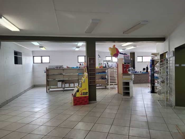 Prime commercial property with retail spaces, office, storeroom, bachelor flat, and double garage; rental contracts in place.