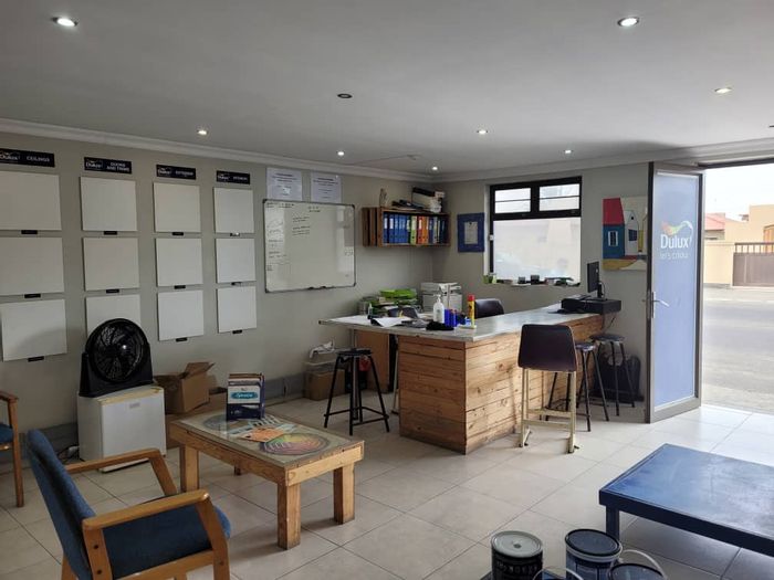 This commercial property in Walvis Bay features a 1025 sqm showroom and a 225 sqm mezzanine, registered as a PTY.