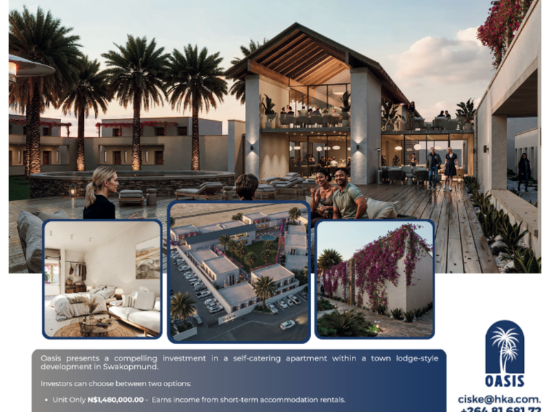Live and earn in Kramasdorf, Swakopmund — convenient coastal lifestyle with on-site café and leisure options. Fully furnished, self-catering units, managed investment with access to a pool.