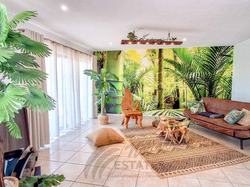 Coastal urban lifestyle in Central Swakopmund—steps from shops, restaurants and the beach. Modern boho-chic interiors open onto a north-facing balcony; sold furnished, tandem garage, two beds/two baths.