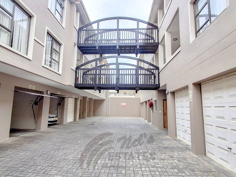 Walk-to-everything Central Swakopmund living—secure, lock-up-and-go apartment with balcony and lift access. Open-plan kitchen/living, two bedrooms (main en-suite), tandem automated garage and storage.