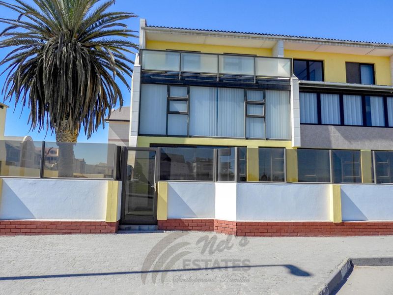 Seafront investment steps from Swakopmund beach and aquarium, ideal for Airbnb or hotel management, with three private balconies offering uninterrupted sea views, three bedrooms and two bathrooms.