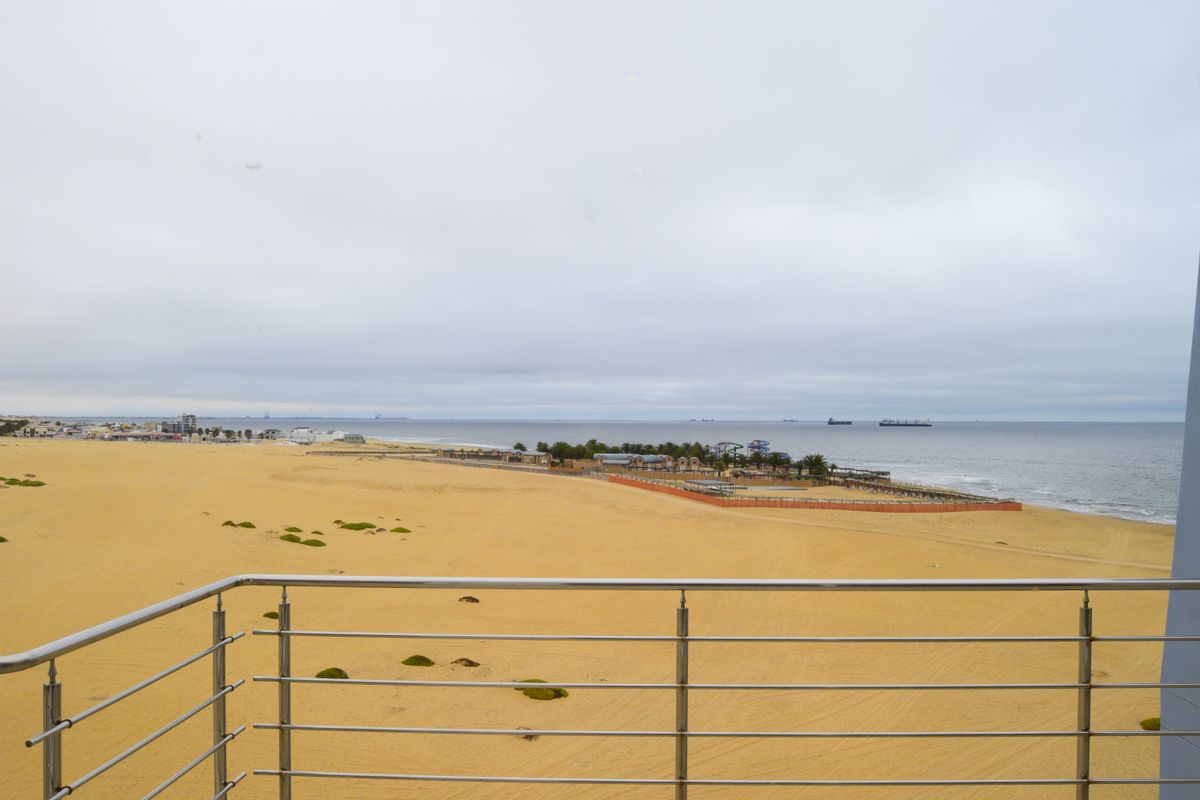 Enjoy desert-dune mornings and Atlantic sunsets at Sunset Sail penthouse, with panoramic ocean views, indoor built-in braai, modern granite kitchen — three bedrooms, 2.5 baths, double garage.