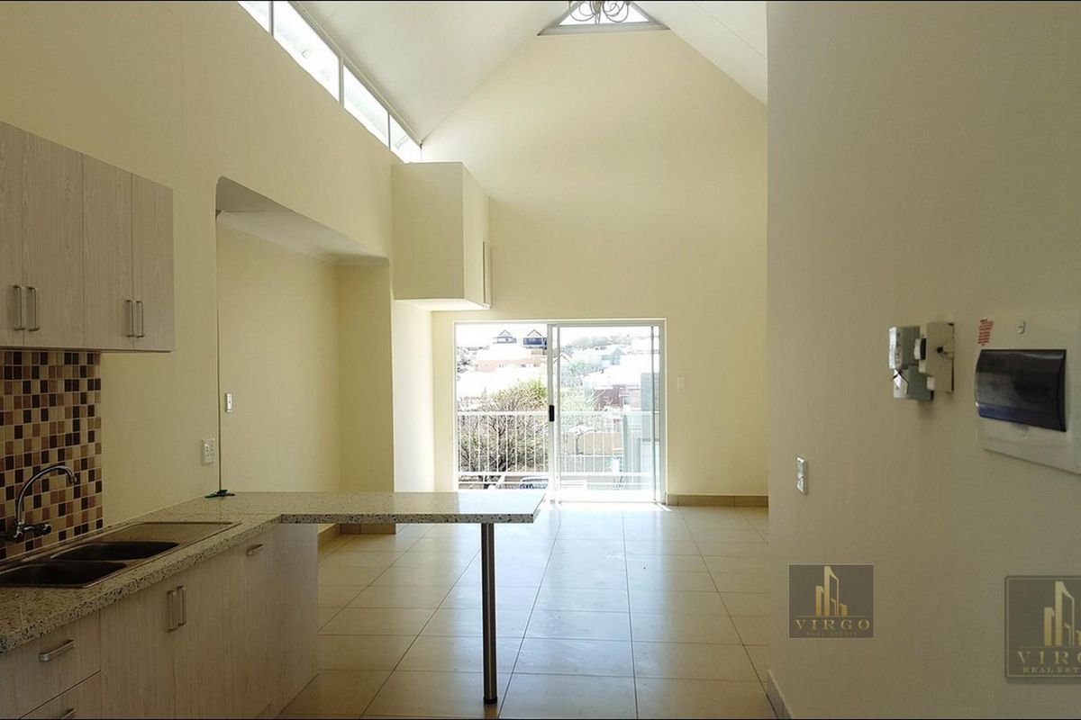Easy Elisenheim living minutes from Windhoek Central, steps to Spar and eateries, bright open-plan lounge and kitchen, secure estate and tandem garage — two bedrooms, two bathrooms.