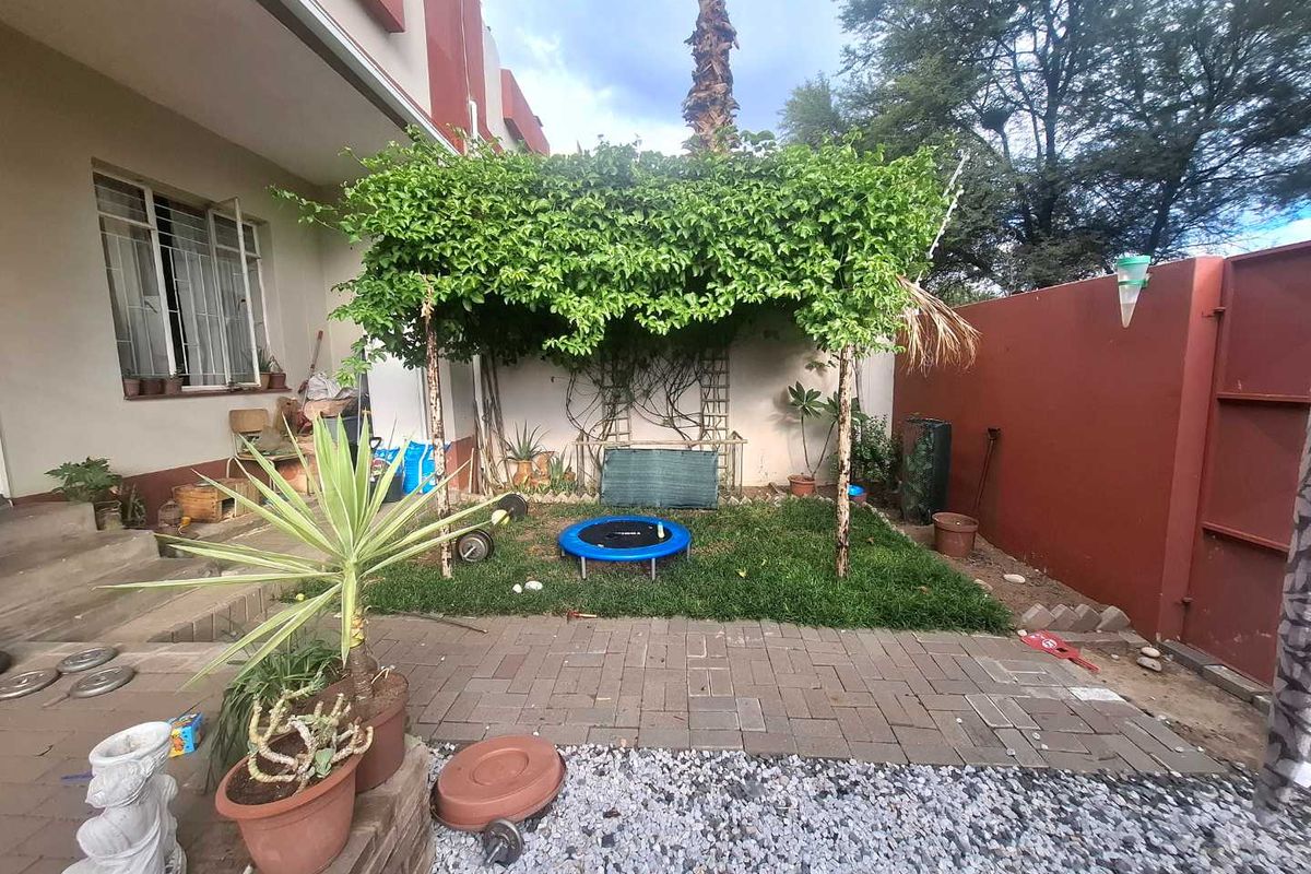 Relaxed ground-floor living in a quiet, convenient neighbourhood with a lovely private garden and open-plan kitchen/lounge — perfect for first-timers or investors (2 beds, 1 bath, covered parking; N$7,400 rental).