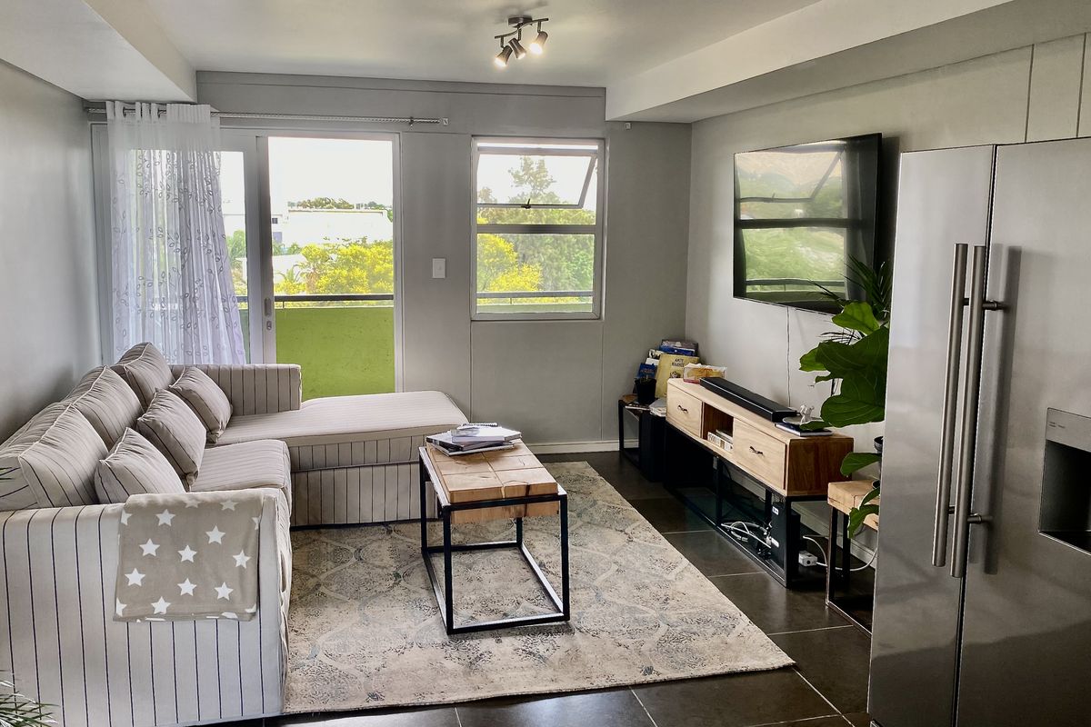 City convenience in Windhoek’s Riverport Complex with west-facing balcony and Küpferberg mountain views, secure 24/7 complex; two-bedroom apartment currently generating N$8,500/month rental income.