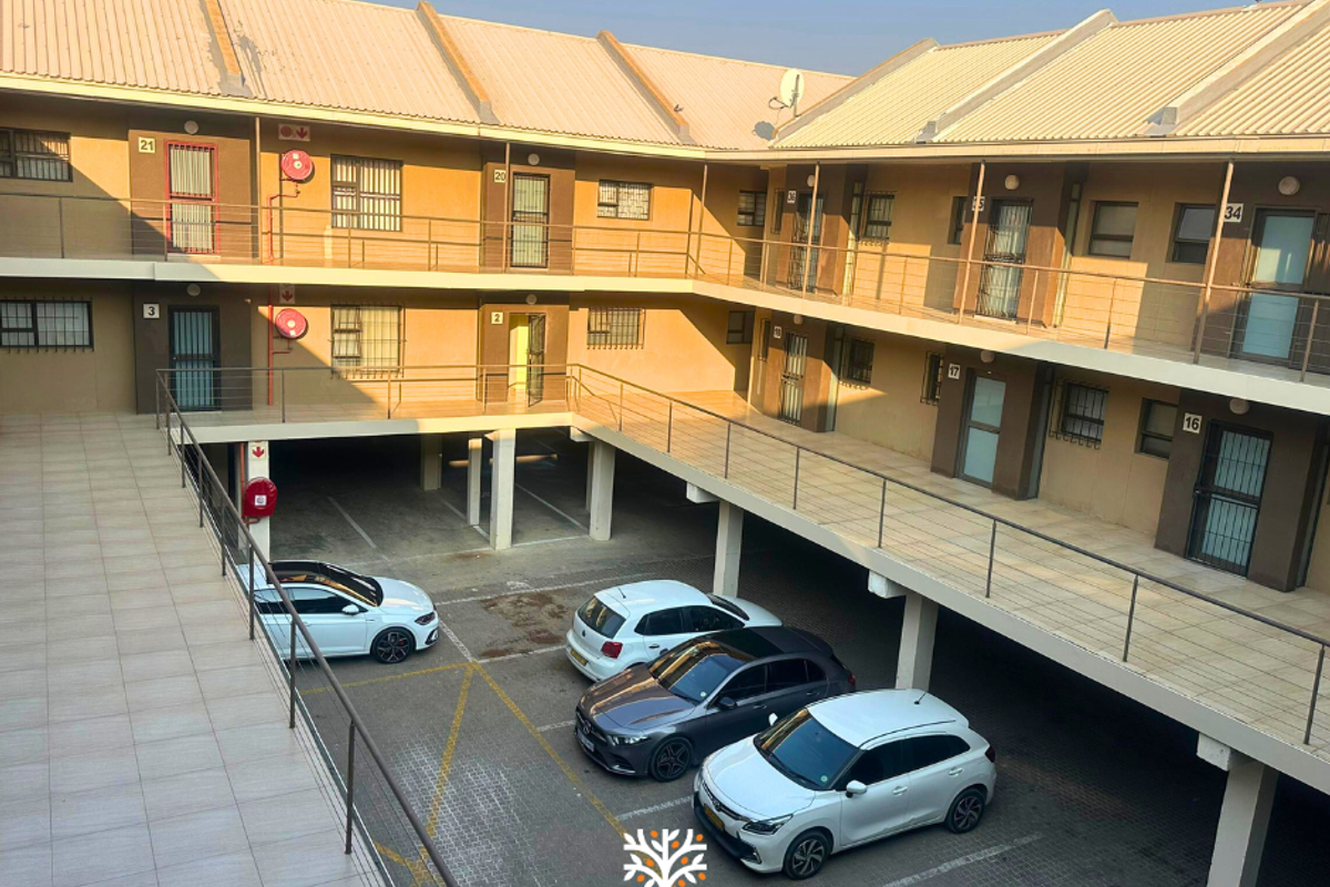 Energetic city living in Central Windhoek West/CBD with easy access to shops and transport; second-floor 1-bed apartment features open-plan living, a stoep and under-roof parking, strong rental yield.