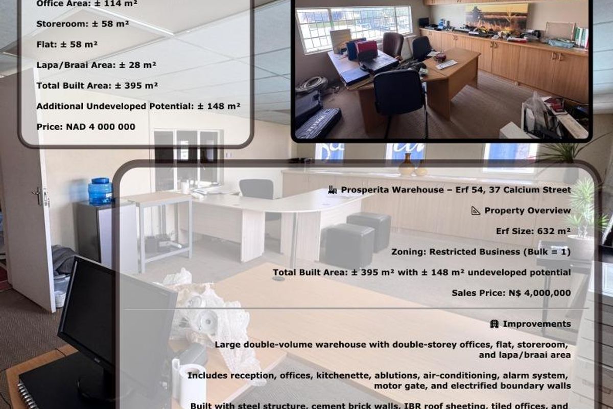 Prosperita is an industrial area in Windhoek offering a mix of established businesses and developing opportunities, particularly suited for logistics, manufacturing, and warehousing.