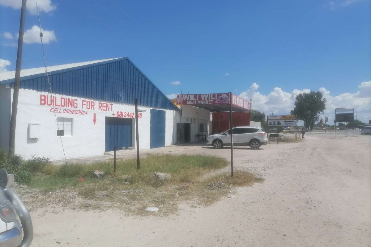 Prime 1117sqm commercial property on Oshakati main road with warehouses, shop/office, outside room, water closets, and customer parking.
