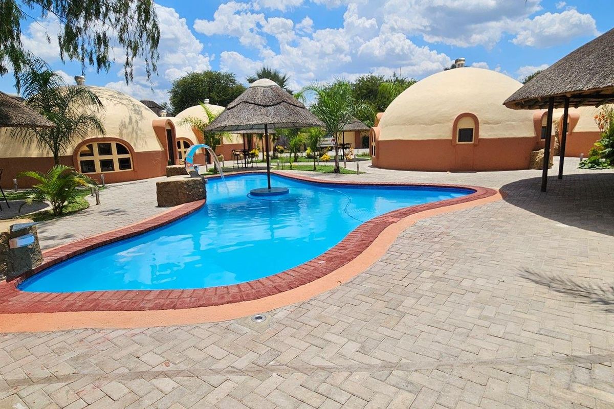Central Katima Mulilo CBD retreat ideal for hospitality or medical use, set on 2,500m² with 16 ensuite dome units, triple administration block and central swimming pool.