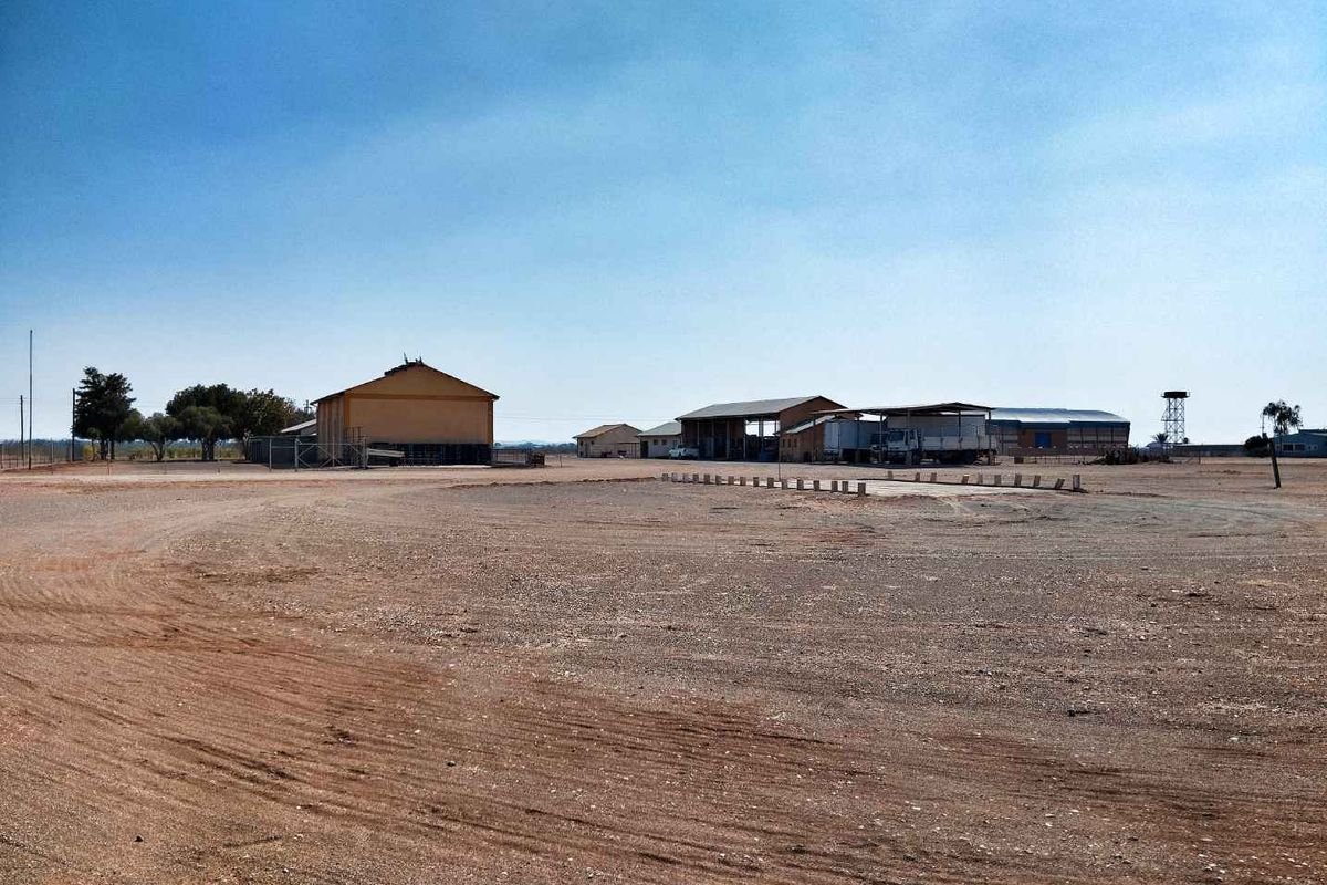 Ideal logistics hub in Mariental, steps from the newly paved B1 and Natis — choose 1.98ha vacant erf or 3.84ha with large warehouses and high steel carports.