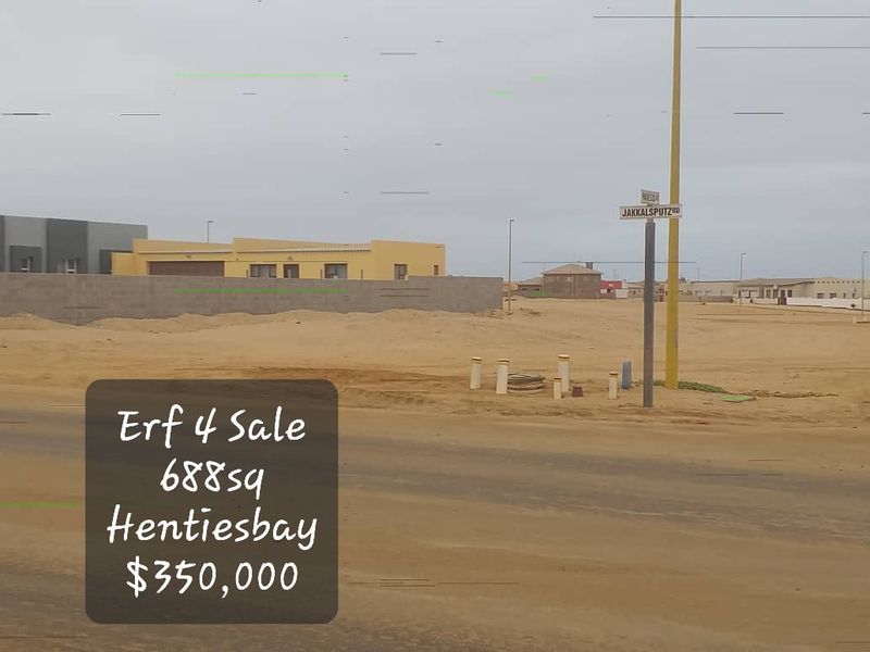 Embrace coastal living in Henties Bay โ prime corner plot on Jakkelsputs Road with development potential and reduced transfer costs via CC; 688 mยฒ offers room for your seaside project.