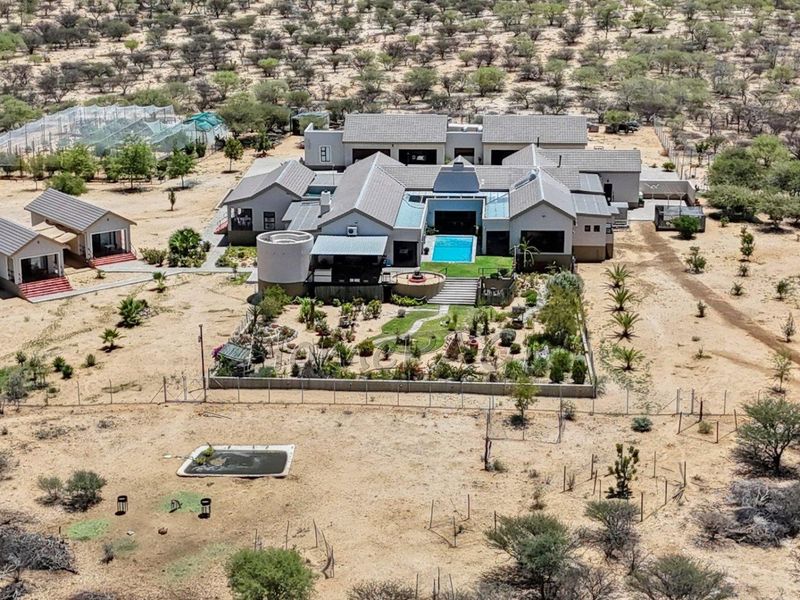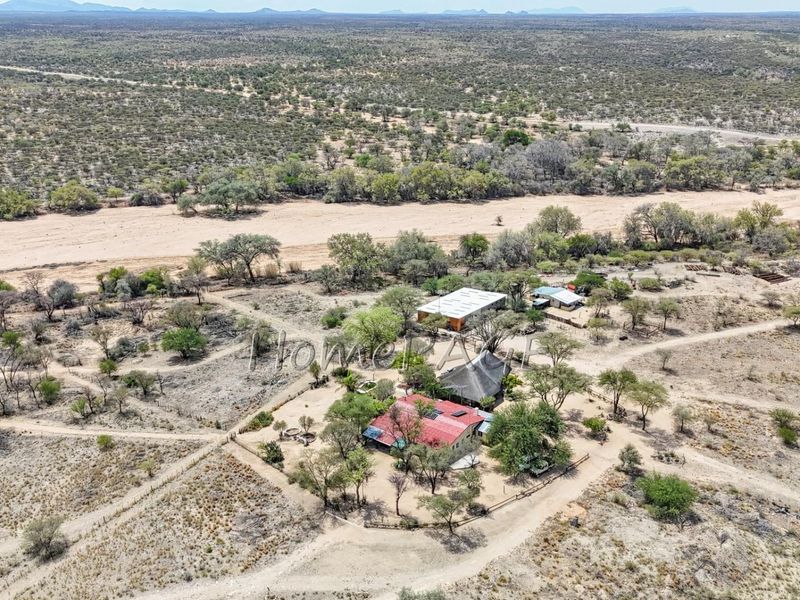 Riverside farm living on the Omaruru River in Erongo, Namibia — thriving pomegranate orchard, hydroponics and cold room, five bedroom main house with three bathrooms and double garage.
