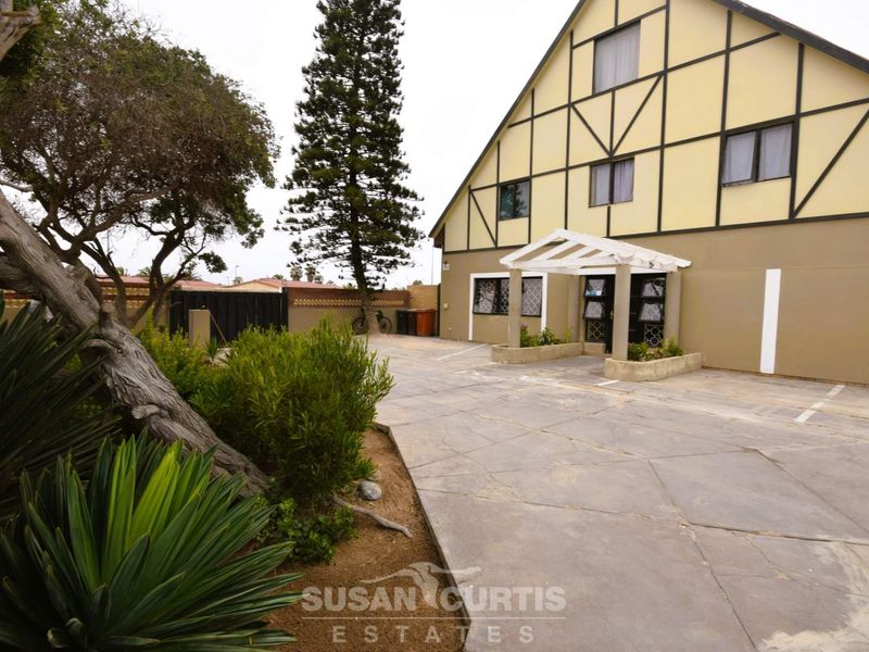 Operate a thriving guesthouse in Swakopmund’s central conservation area, steps from dunes and beach. Private BBQ yard, multiple furnished cottages, secure access — eight bedrooms, eight bathrooms, two garages.