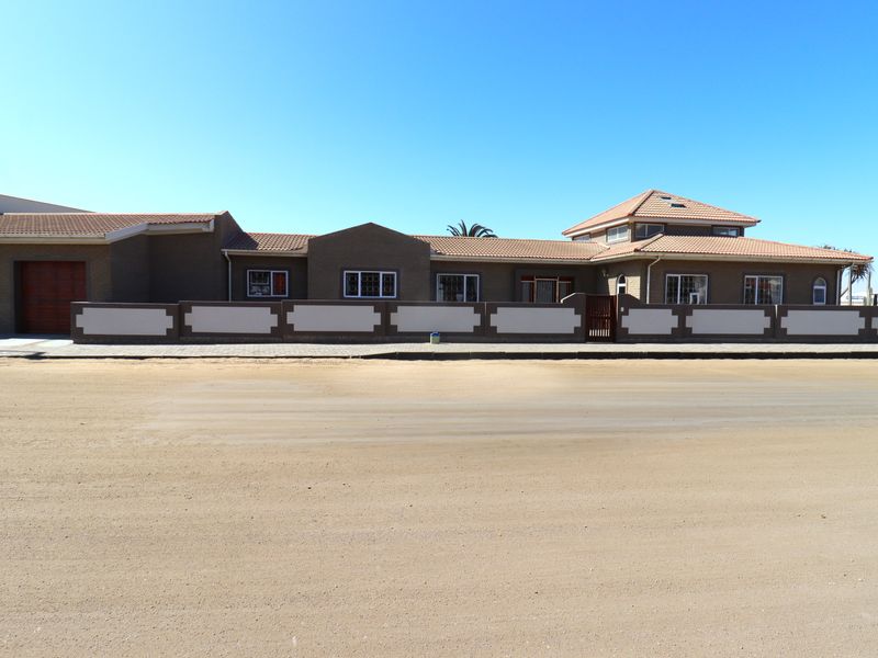 Coastal city living in Swakopmund CBD with ocean views, walkable beach access and shops nearby; expansive garden and separate garden flat — seven bedrooms, seven bathrooms, single garage.