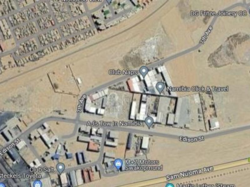Secure steady income in Swakopmund's industrial heart on Hidipo Hamutenya Street, with prime B2 highway access. Features large workshops, container hardstand, and ample parking.
