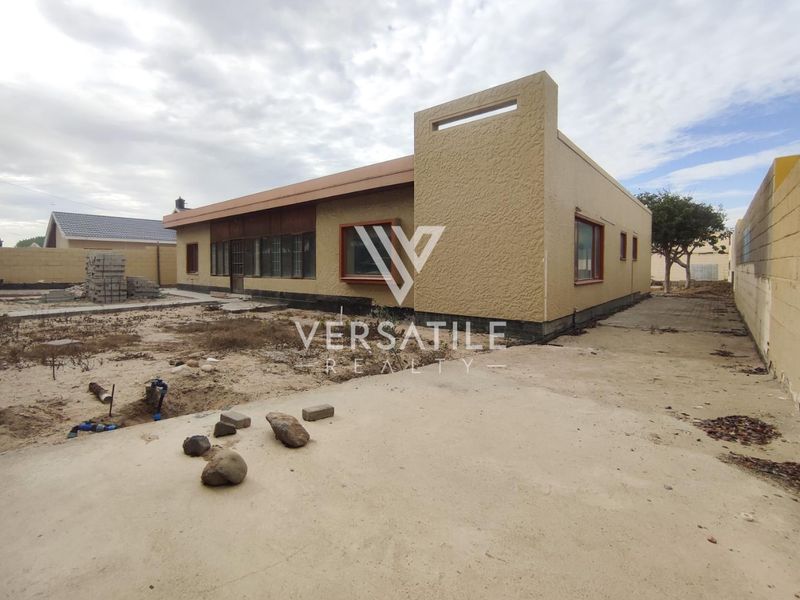 Embrace relaxed coastal living in Swakopmund's sought-after neighbourhood, with open-plan spaces and exposed wooden trusses. Three bedrooms, three ensuites and a double garage for convenience.