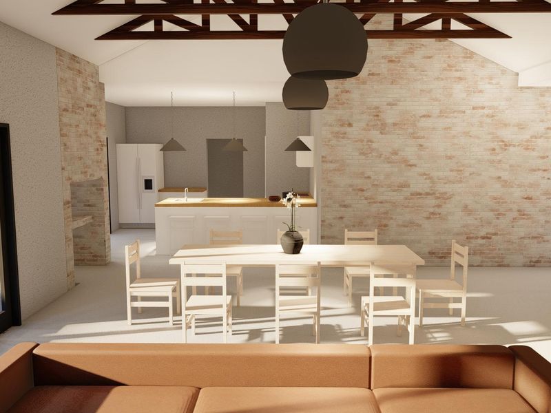 Soaring open trusses and high-end finishes frame seamless indoor-outdoor living with a wide veranda and garden in a serene neighbourhood — study, scullery, 3 beds, 3 baths, double garage.