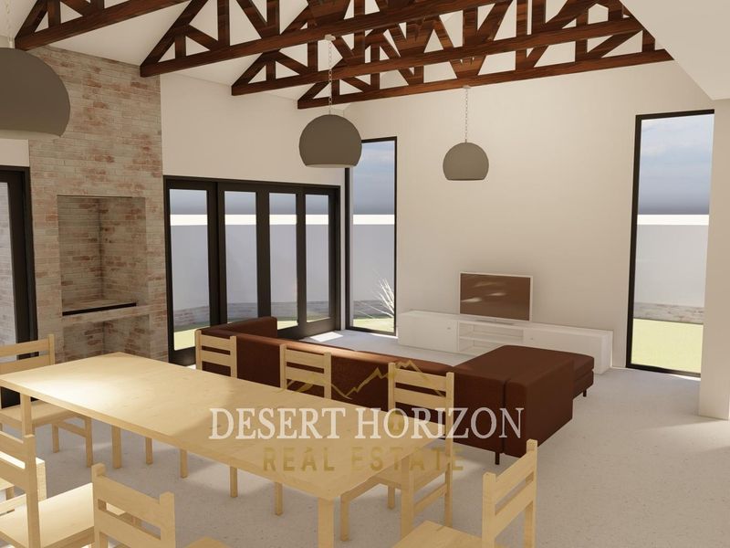 Desert-edge living in Kramersdorf with sweeping Namib dune views, modern double-volume interiors and built-in indoor BBQ — three en-suite bedrooms, 3.5 bathrooms and double garage.