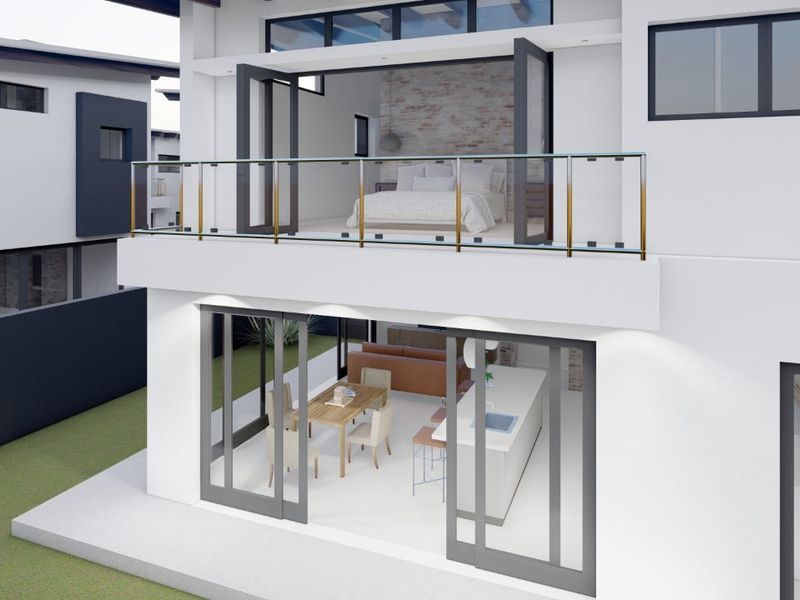 Riverside living in Kramasdorf, steps from the Swakop River — exclusive five-unit development with open-plan living, indoor BBQ and private garden. Three bedrooms, 2.5 baths, double garage.