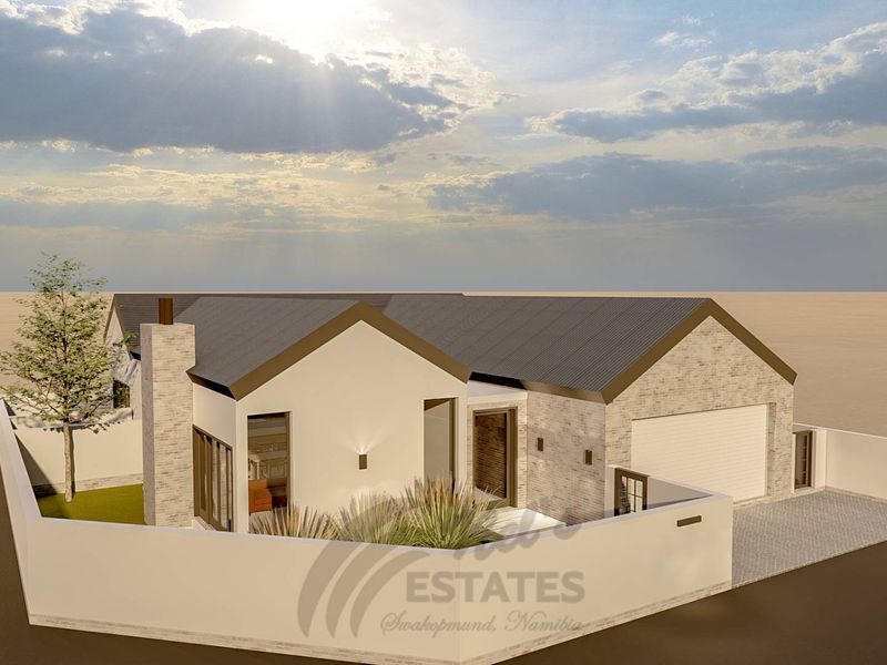 Embrace sunny, secure Kramersdorf living in Swakopmund with modern entertaining — inside braai area, open-plan kitchen, and three bedrooms with double garage.