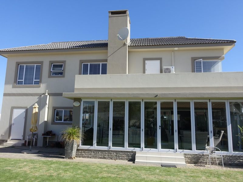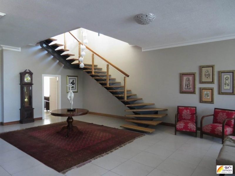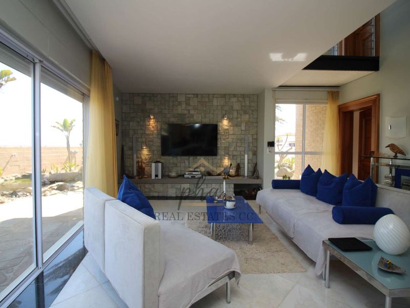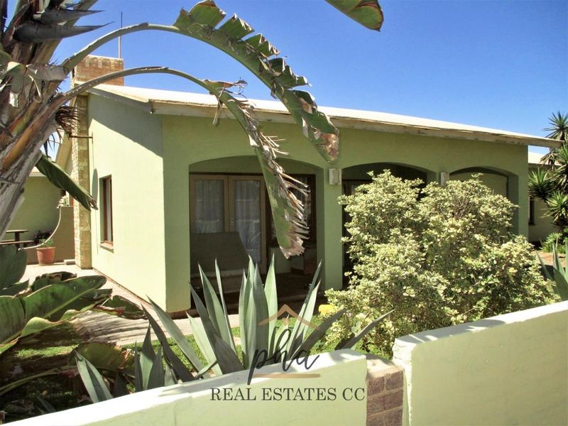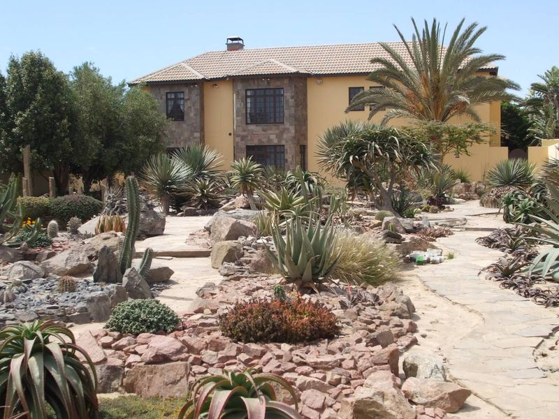 Spacious double-story house with garden, separate flat, and security features on two titled erven overlooking the Swakop River and dunes.