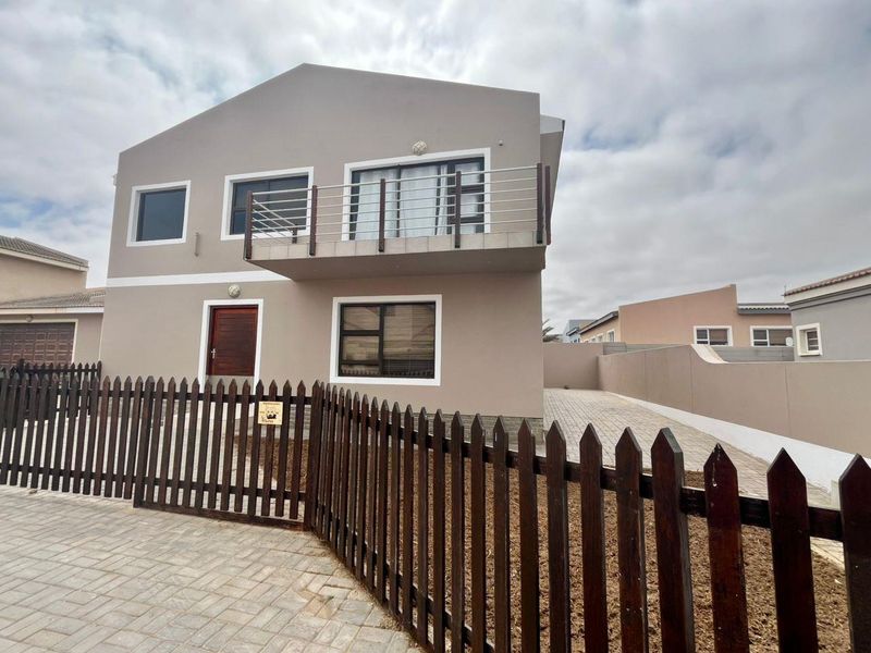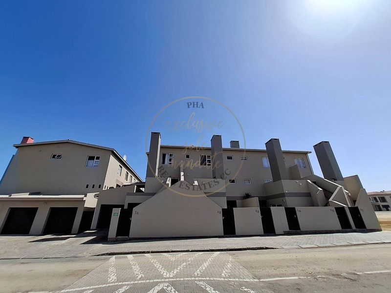 Coastal living in Swakopmund with sea breezes and relaxed seaside charm; modern open-plan kitchen and private balcony. Three bedrooms, two bathrooms and double garage.