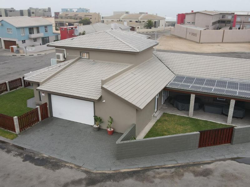 Beachside living in Mile 4, Swakopmund — modern family home within walking distance to the beach, covered entertainment area with built-in BBQ, separate one‑bed flat and double garage.