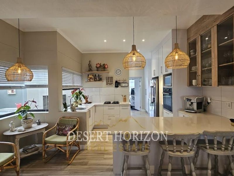 Minutes from Swakopmund beach in Mile 4, classic-meets-modern home with private en-suite balcony, spacious living, double garage and generous yard for outdoor living.