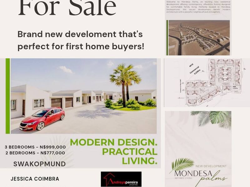 Enjoy contemporary family living in Mondesa, Swakopmund — peaceful, conveniently located community. Homes include a private stoep, quality finishes and 2–3 bedroom layouts.