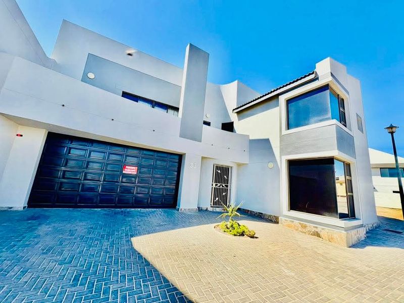 Coastal, family-focused living in Swakopmund's Extension 9, minutes from beach and schools. Designer kitchen with separate scullery and private yard; four en-suite bedrooms, triple garage.