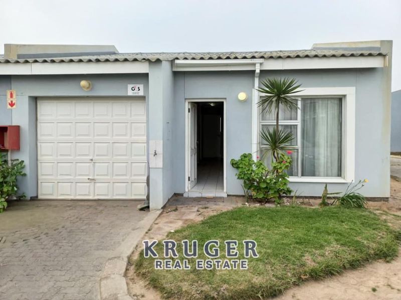 Comfortable ground-floor apartment in Pelican Village, Swakopmund — stroll to Woermann Brock shops. Open-plan kitchen and lounge, prepaid electricity; two bedrooms, one bathroom and single garage.