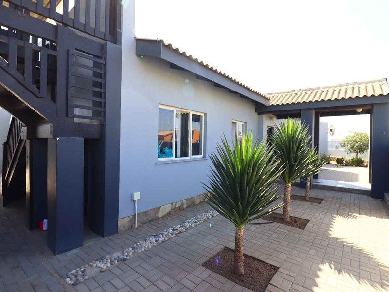 Relaxed coastal living in Tamariskia, Swakopmund — spacious main house plus self-contained flats ideal for guests or rental income, paved yard and shaded carport; six bedrooms overall.
