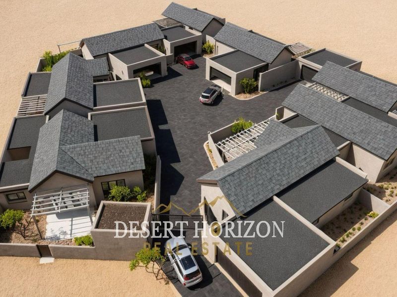 Embrace secure, lock-up-and-go coastal living in Tamariskia, Swakopmund — brand-new eight-unit development with contemporary finishes and modern kitchens; three-bedroom, two-bath homes with double garages.