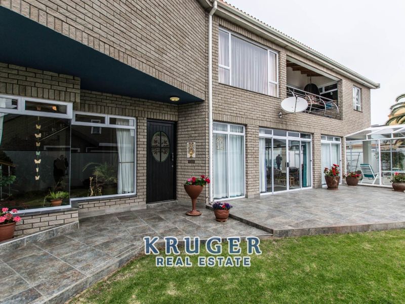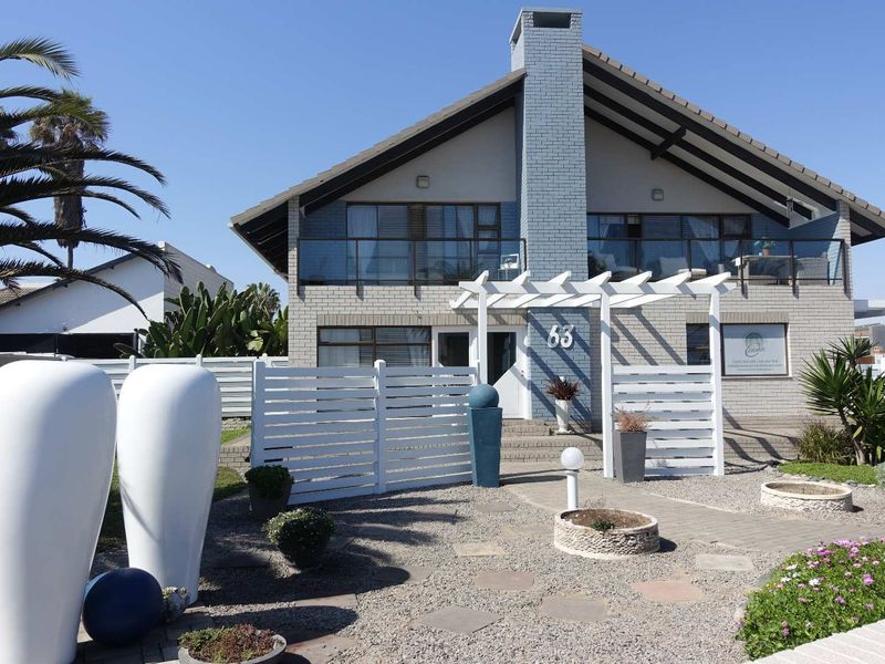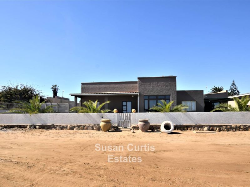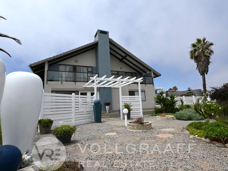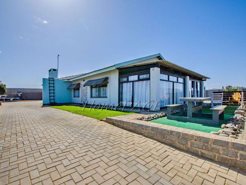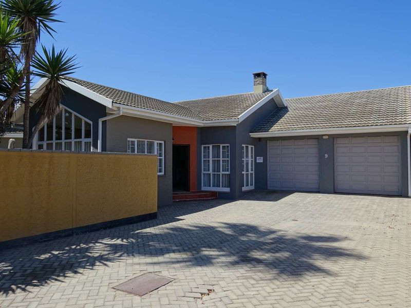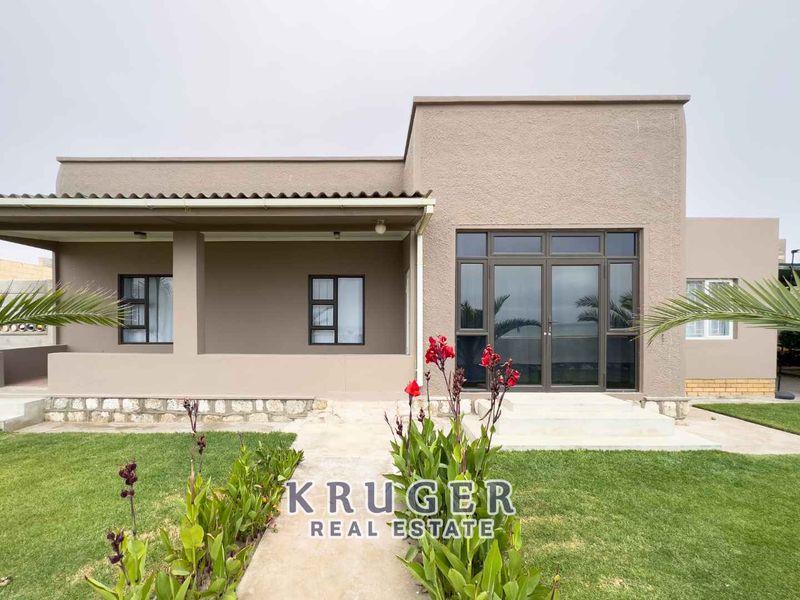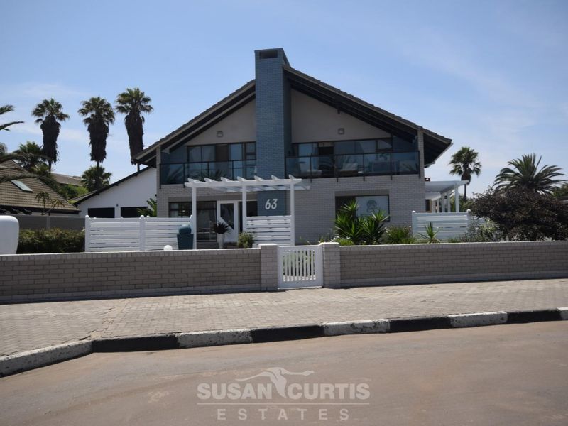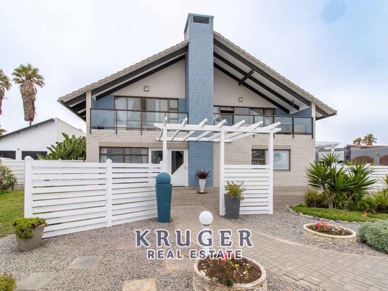 Every day feels like a vacation with ocean breezes in Swakopmund — expansive balcony and private master balcony, mature garden, bonus ground-floor spa; five bedrooms, three bathrooms, triple garage.