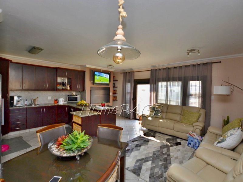 Ground floor unit with 3 bedrooms, 2 bathrooms, and 2 garages. Total size: 190 m². Price: N$2,730,000.