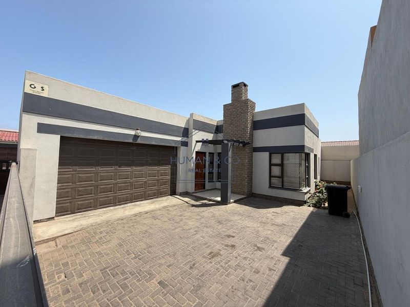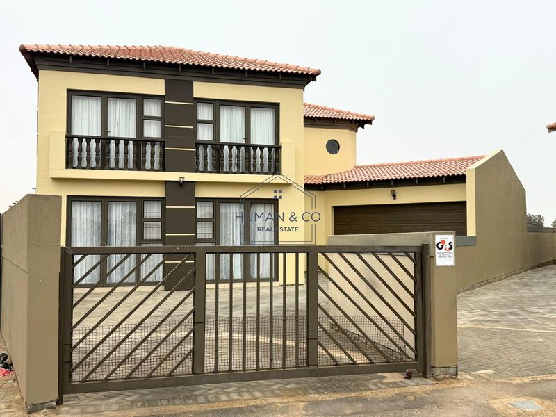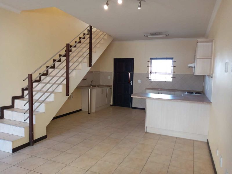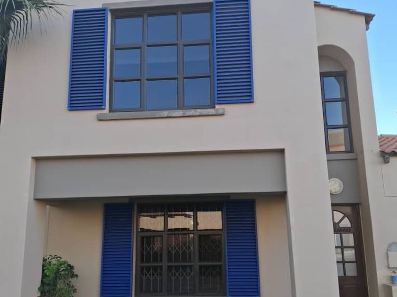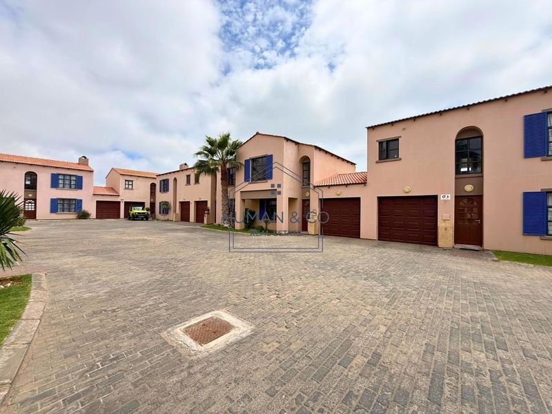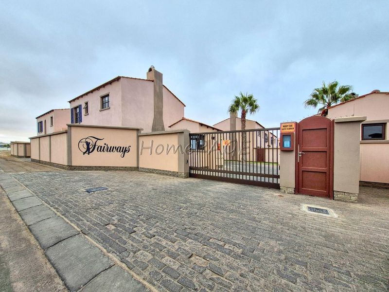 Hands-off investment in Fairway Estate with steady N$9,000 monthly income — double-story townhouse offering open-plan living, indoor BBQ and storage, two bedrooms, two bathrooms and double garage.
