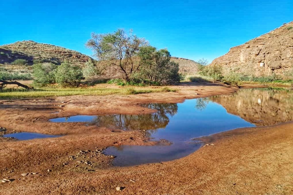 Authentic Namibian ranch lifestyle near Keetmanshoop, offering vast grazing and lookout points, perennial fountains and driveable hills — main homestead with four bedrooms, two baths and double garage.