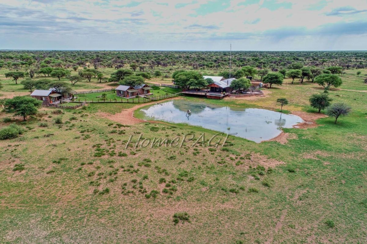3381-hectare farm near Gobabis with lodge, residence, game, water infrastructure, solar power, and extensive wildlife, priced at N$29 million.