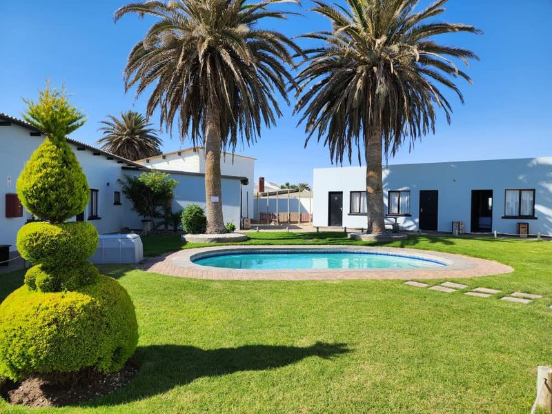 Seaside hospitality retreat in Henties Bay with panoramic ocean views and turnkey operation, featuring a sun terrace, pool and 26 en-suite rooms — ideal for immediate revenue.