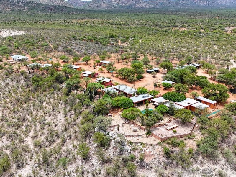 Create a thriving safari stopover near Etosha, Vingerklip and Twyfelfontein — guest lodge with pool, lapa, restaurant, 30 ensuite rooms, campsites and conference facilities on 3.4ha.