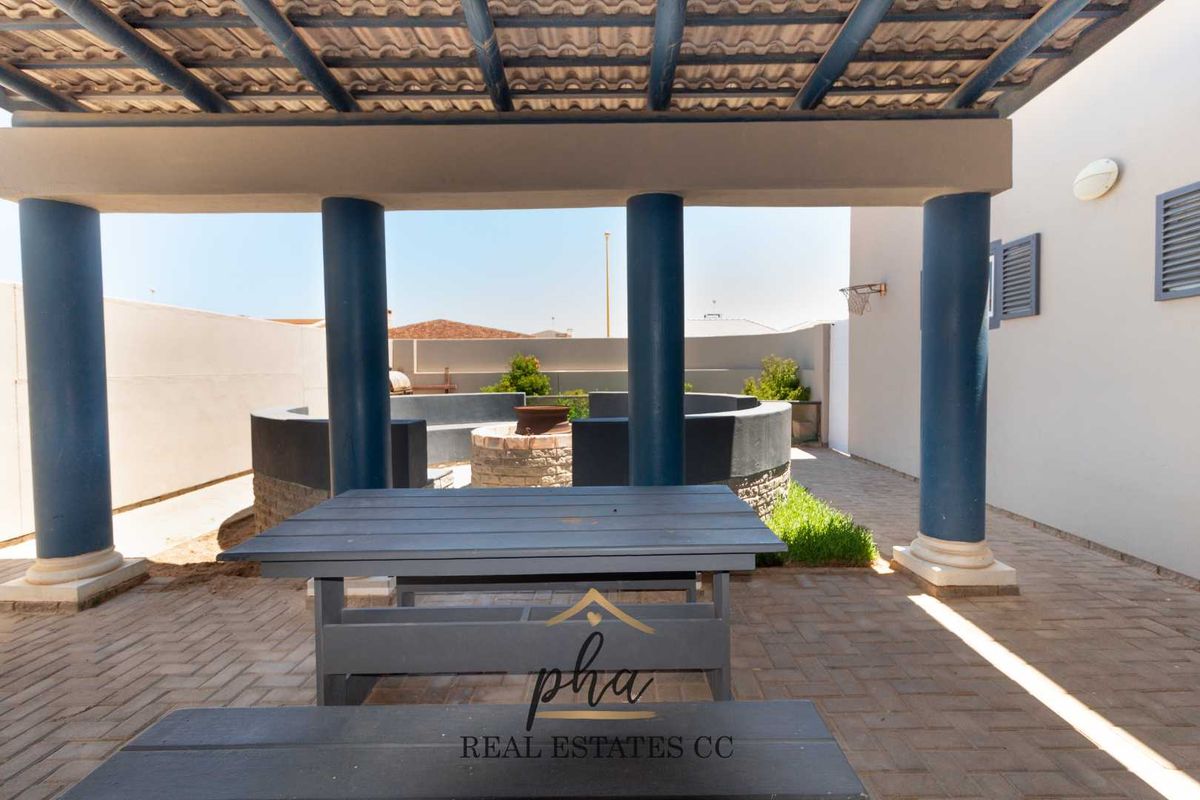 As you step inside, you'll be greeted by a welcoming outdoor space featuring a boma and seating area, providing the perfect setting for entertaining friends and family under the open sky.