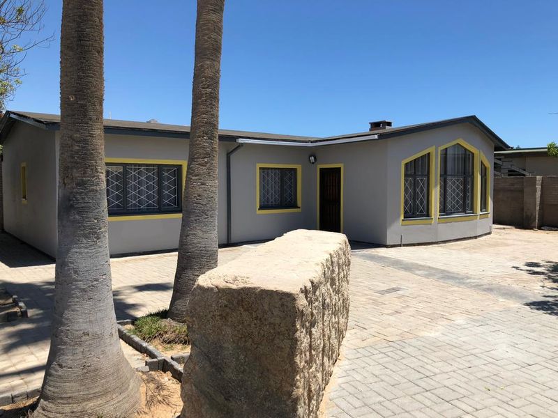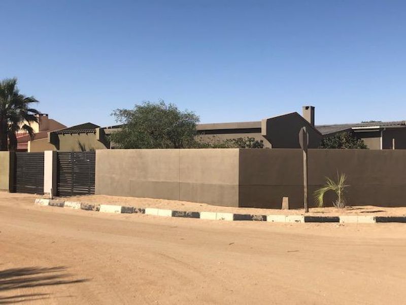 Corner home with 4 bedrooms, 3 bathrooms, potential guest flat, large garage, security features, priced at N$1,700,000.