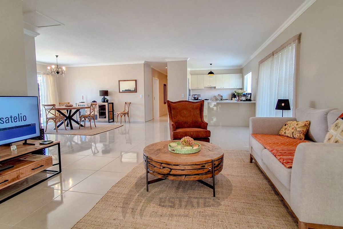 The home offers two well-proportioned bedrooms, both with en-suite bathrooms. The main bedroom includes air conditioning and a built-in safe, while the guest bedroom also enjoys its own en-suite. Additional linen cupboards with an integrated safe provide extra storage and security.